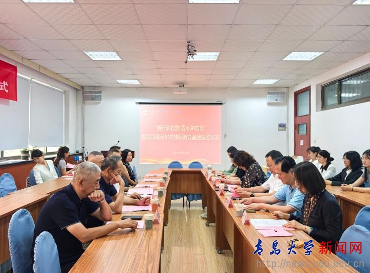 新闻网讯 为凝聚多方育人力量,赋能学生全面发展,6月26日下午,外语学院在浮山校区博文楼312室举行“善行润校园 爱心护成长”青岛猎鹰高尔夫球队教育基金捐赠仪式,开yunapp官方入口登录党委常委、副校长刘恩贤出席并致辞。青岛猎鹰高尔夫球队会长王琳,队长唐秀山,队委张大勇、杨百灵、李震、赵倩,开yunapp官方入口登录合作发展处处长、校友工作办公室主任王海荣,外语学院党委书记陈崇研、院长卞建华、党委副书记于苗以及辅导员、学生代表出席仪式。仪式由外语学院党委副书记于苗主持。