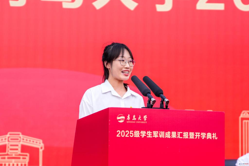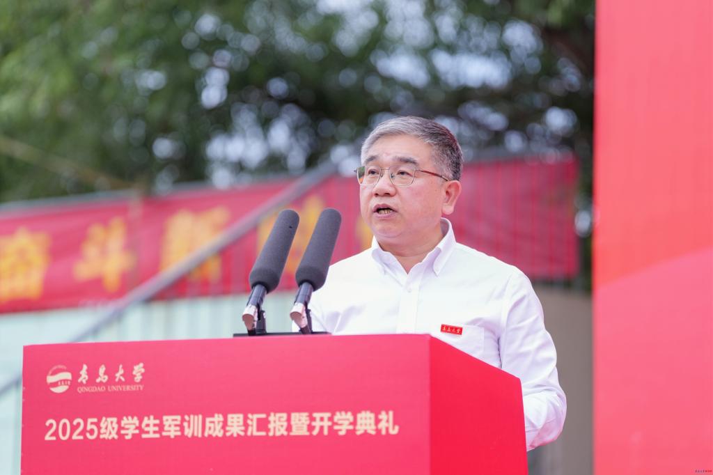 教师代表电气工程学院张智晟教授勉励新生要学在青大,志在天下,胸藏万卷,肩负山河,既能脚踏实地丈量学术的深度,更能仰望星空拓展生命的广度。希望大家要以自律为尺,筑牢生活的基石;以创新为翼,突破认知的边界;以利他为光,拓展生命的格局;以报国为志,锚定人生的坐标。